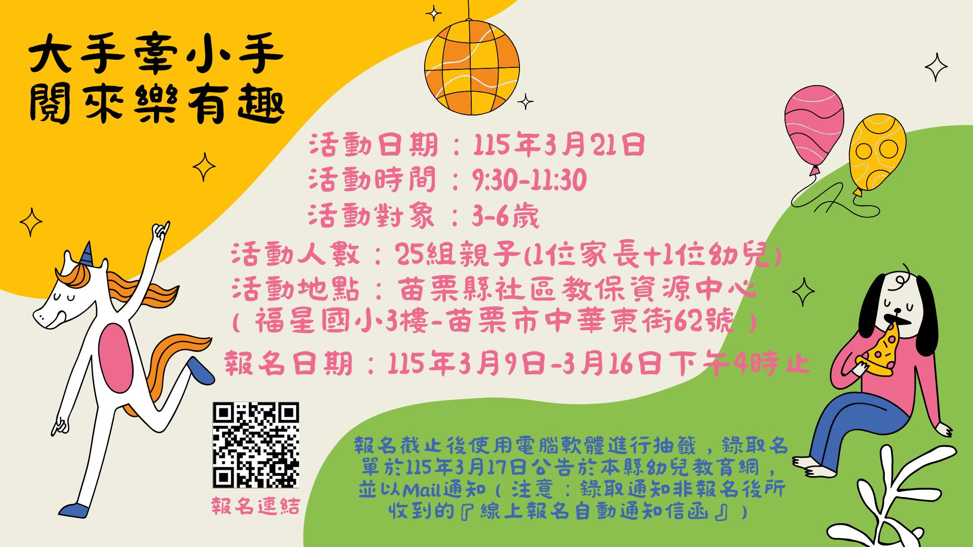共同性公告-115年3月21日苗栗縣社區教保資源中心親子活動開始報名囉!